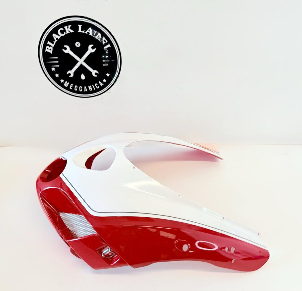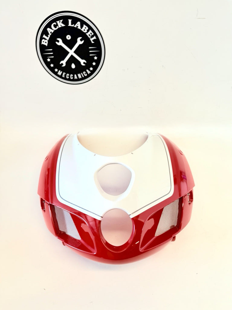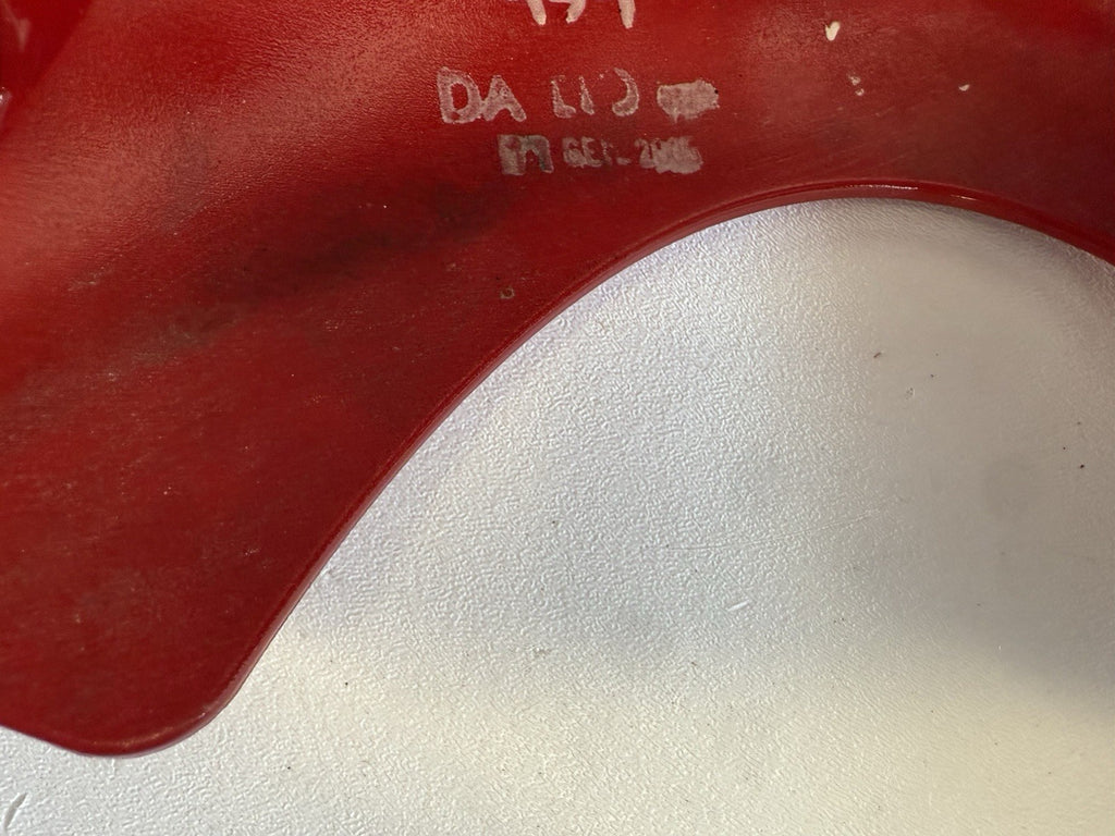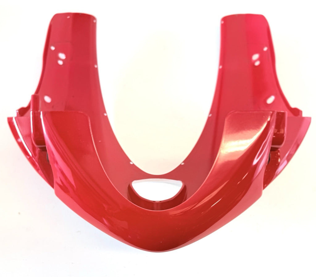 The product is a genuine front headlight fairing for Ducati 05-Up 749 999 motorcycles made in Italy. The fairing has been refurbished and comes in a red color. It is made of ABS material and includes one piece. The manufacturer part number is 48110251CA, and it is designed to be placed on the upper front part of the vehicle. This high-quality fairing is a perfect choice for customizing and restoring your Ducati motorcycle to its original condition. Defects are clearly marked in pics