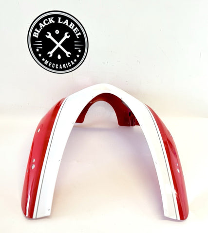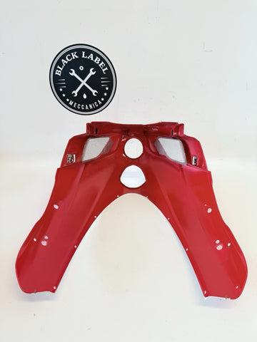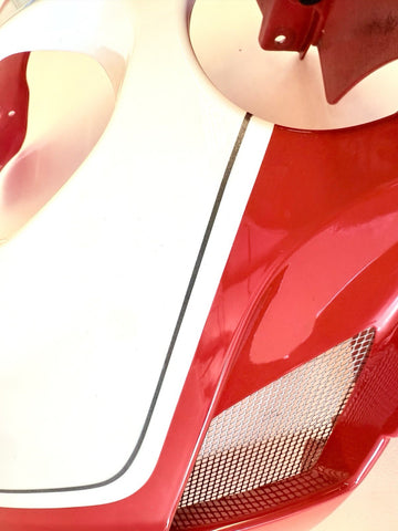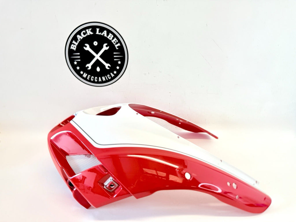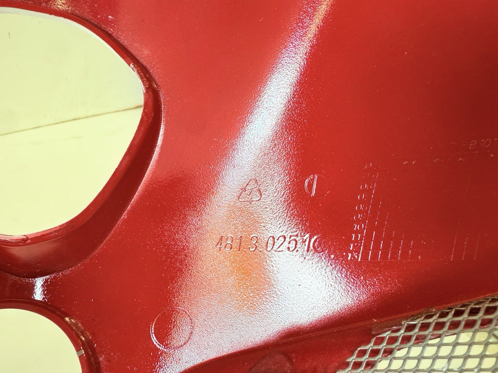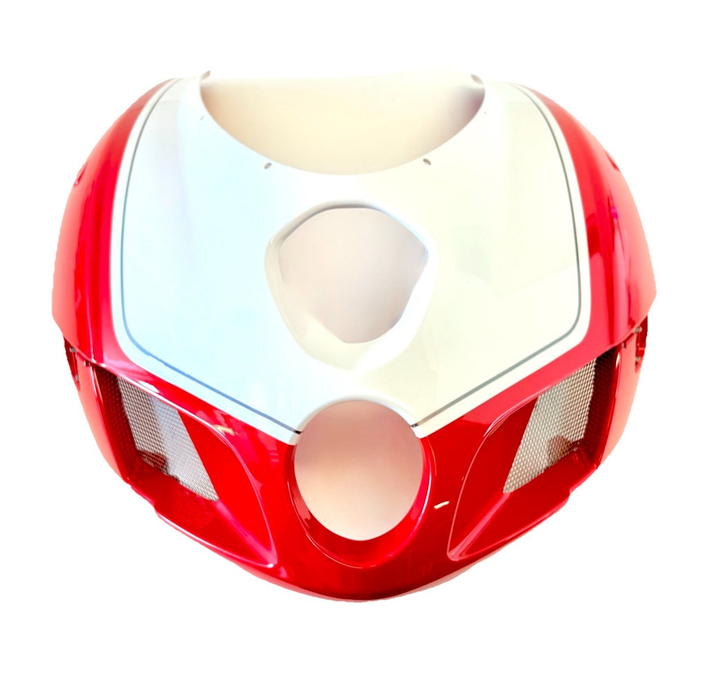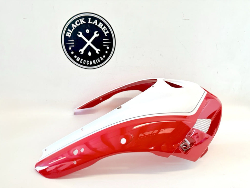 The product is a genuine front headlight fairing for Ducati 05-Up 749 999 motorcycles made in Italy. The fairing has been refurbished and comes in a red color. It is made of ABS material and includes one piece. The manufacturer part number is 48110251CA, and it is designed to be placed on the upper front part of the vehicle. This high-quality fairing is a perfect choice for customizing and restoring your Ducati motorcycle to its original condition. Defects are clearly marked in pics