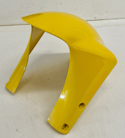The Genuine Ducati 56410181A Front Fender Mudguard in Yellow is a high-quality motorcycle part made in Italy. This painted ABS fender is designed specifically for street motorcycles such as the Ducati 748, 998, 996, and 916. With its front placement on the vehicle, this fender only includes one piece, providing a perfect fit and genuine Ducati quality for motorcycle enthusiasts looking to replace or upgrade their bike's appearance.