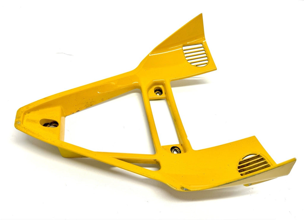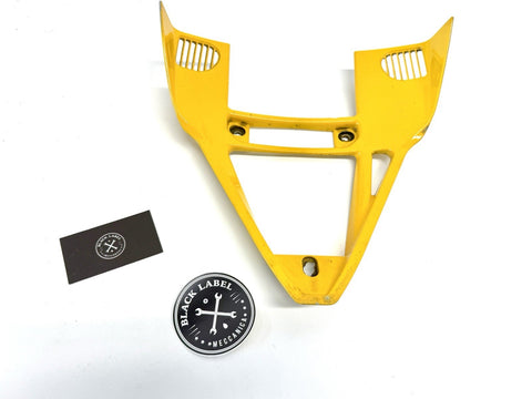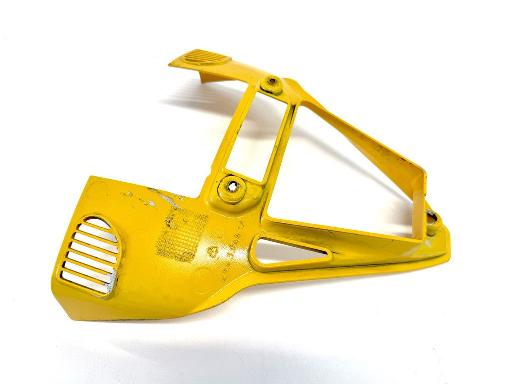 The Genuine Ducati 749-999 Yellow Oil Cooler Air Conveyor Fairing is a high-quality motorcycle part manufactured in Italy. Made from durable ABS material, this painted yellow fairing features the OEM part number 48430441A and is designed specifically for the front placement on the vehicle. Although it may have minor paint chips and scratches, this authentic Ducati fairing is a reliable and stylish addition to your motorcycle, ensuring both functionality and aesthetics.