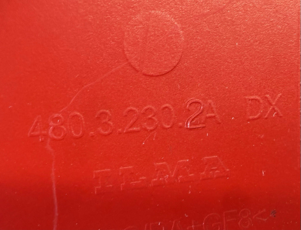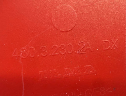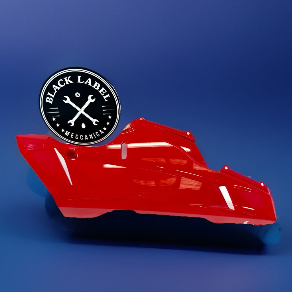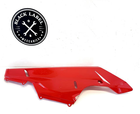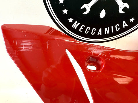 The product is a genuine Ducati right lower fairing cowl in red, designed for 848, 1098, and 1198 models. Made of ABS material, this painted fairing is manufactured in Italy and is the OE/OEM part number 48032302A. It is a high-quality replacement part that needs paint and repair