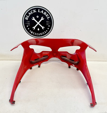 The Genuine Ducati 848-1098-1198 S R EVO SP Headlight Fairing in Red is a high-quality motorcycle accessory designed for Ducati models. Made of durable plastic in Italy, this fairing is a single piece with the OE/OEM part number 48130402A. It is specifically designed for the front placement on the vehicle, providing a sleek and stylish look while offering protection to the motorcycle. Perfect for Ducati enthusiasts looking to customize their bike with genuine Ducati parts.