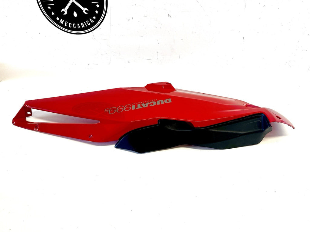 The Genuine Ducati Superbike 999s Standard Upper Half Fairing Left in Red is a high-quality, ABS material fairing designed for Ducati motorcycles. Made in Italy, this single piece Upper Mid Fairing is a perfect fit for those looking to customize their bike with genuine Ducati parts. The red color adds a sleek and sporty touch to the vehicle's overall appearance, while the left placement on the vehicle ensures a proper fit for optimal performance and aesthetics. Perfect for motorcycle enthusiasts looking to enhance their Ducati Superbike 999 with genuine parts from the manufacturer.