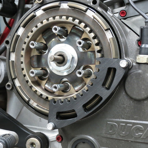 KBIKE dry clutch basket holder Tool made of Delrin. Fits all dry clutch Ducati models. Does not come with hardware. Uses oem clutch cover bolts to secure tool onto clutch case cover.