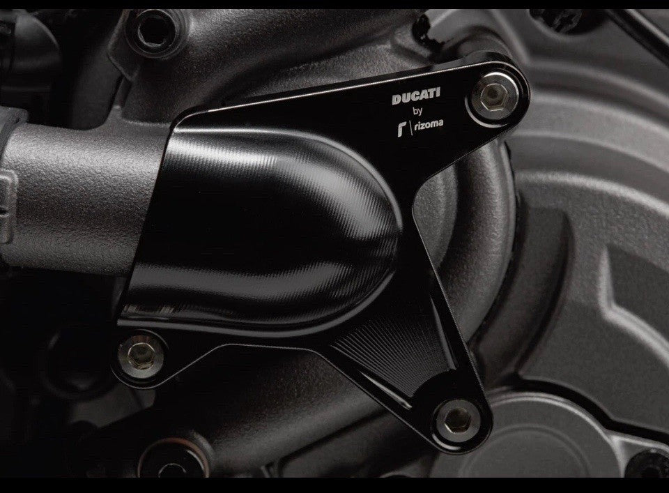This Ducati Performance by Rizoma Water Pump Cover Protection is a high-quality guard made in Italy. It is designed to fit the left side of the front of your motorcycle. The guard is made of durable aluminum material and features an easy fit design. It comes in black color and has the OE/OEM part number 97381041AA.