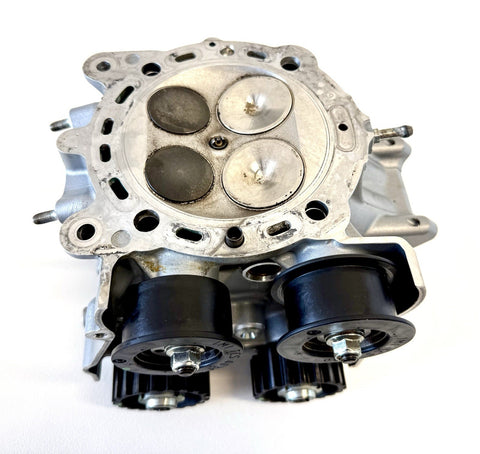 Repair your Ducati 1098 with a genuine front horizontal cylinder head, complete with valves, rockers and camshafts. With less than 2000 miles on the odometer, this cylinder head is in excellent condition and ready to be installed on your bike.