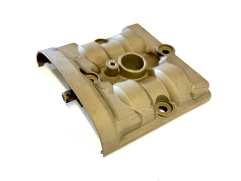The product is a genuine Ducati magnesium cylinder head valve cover designed for use with specific Ducati models, such as the 1098, 848, and 1198. The valve cover features a unique gold color and is made in Italy with a painted finish. This high-quality replacement part is perfect for riders looking to maintain the performance and aesthetics of their Ducati motorcycle.
