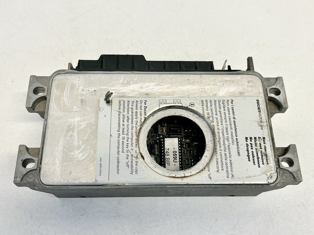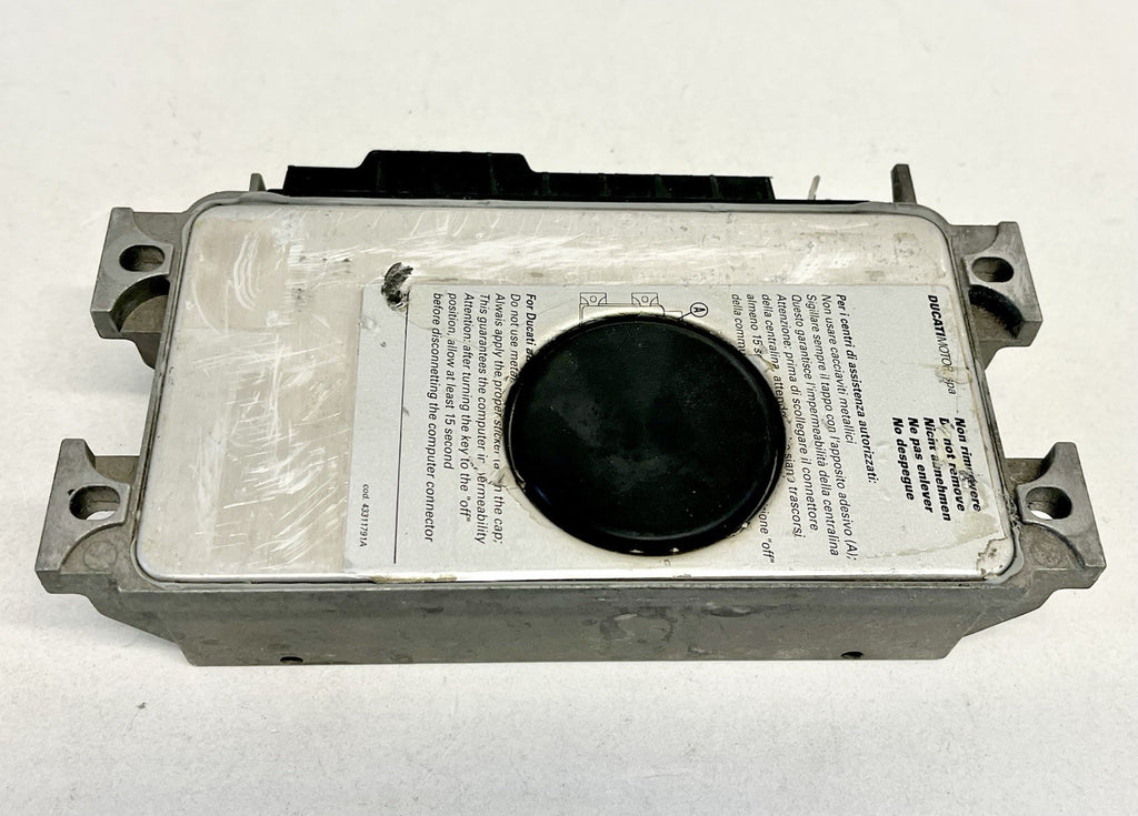 This genuine Ducati ECU computer is designed for 916, 996, 748, ST2, and ST4 models. It is manufactured in Italy by Magneti Marelli and features easy installation. The ECU has a pin terminal type and is OE/OEM part number 28640171A. It is compatible with various Ducati motorcycle models and is a reliable replacement part.