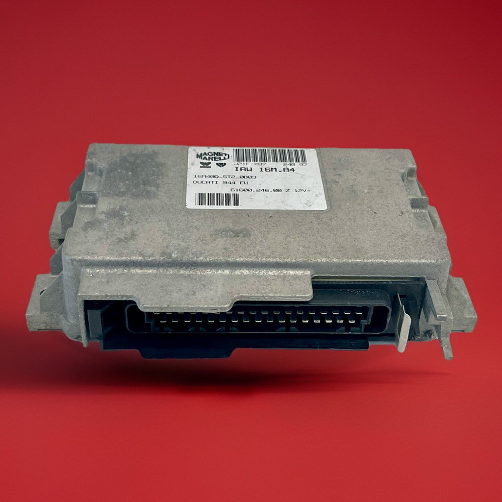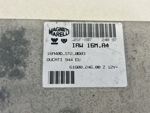 This genuine Ducati ECU computer is designed for 916, 996, 748, ST2, and ST4 models. It is manufactured in Italy by Magneti Marelli and features easy installation. The ECU has a pin terminal type and is OE/OEM part number 28640171A. It is compatible with various Ducati motorcycle models and is a reliable replacement part. No CHIP!