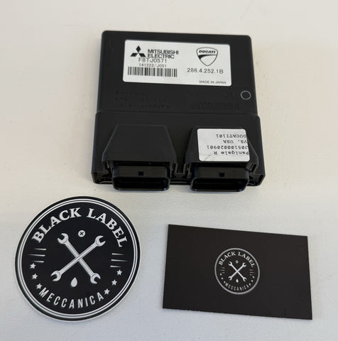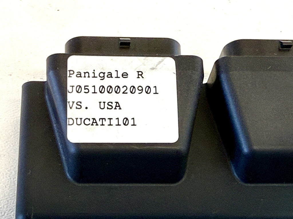 The product is a used OEM Ducati Panigale R ECU Computer Controller Unit (Black Box ECM CDI) with the part number 28642071B. This engine computer unit is designed for easy installation and is manufactured in Japan. It is a crucial component for controlling the ignition timing and fuel injection system in a Ducati motorcycle, ensuring optimal performance and efficiency.