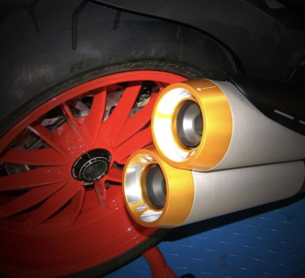 Ducabike FSD01B Bottom Exhaust Diavel Gold Billet Light Alloy End Caps Anodized