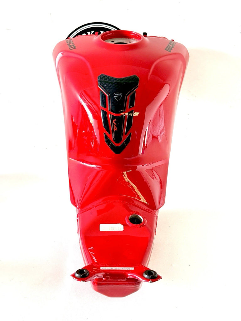 The product is a genuine used Ducati Panigale 2023 V4 V4S fuel gas petrol tank in red color, manufactured in Italy. Made of aluminum and painted in red, this fuel tank is designed for front placement on the vehicle and is suitable for gasoline fuel type. The OE/OEM part number and manufacturer part number are both 58612621BA. It is a high-quality replacement part for Ducati motorcycles, providing durability and authenticity in terms of brand and manufacturing.