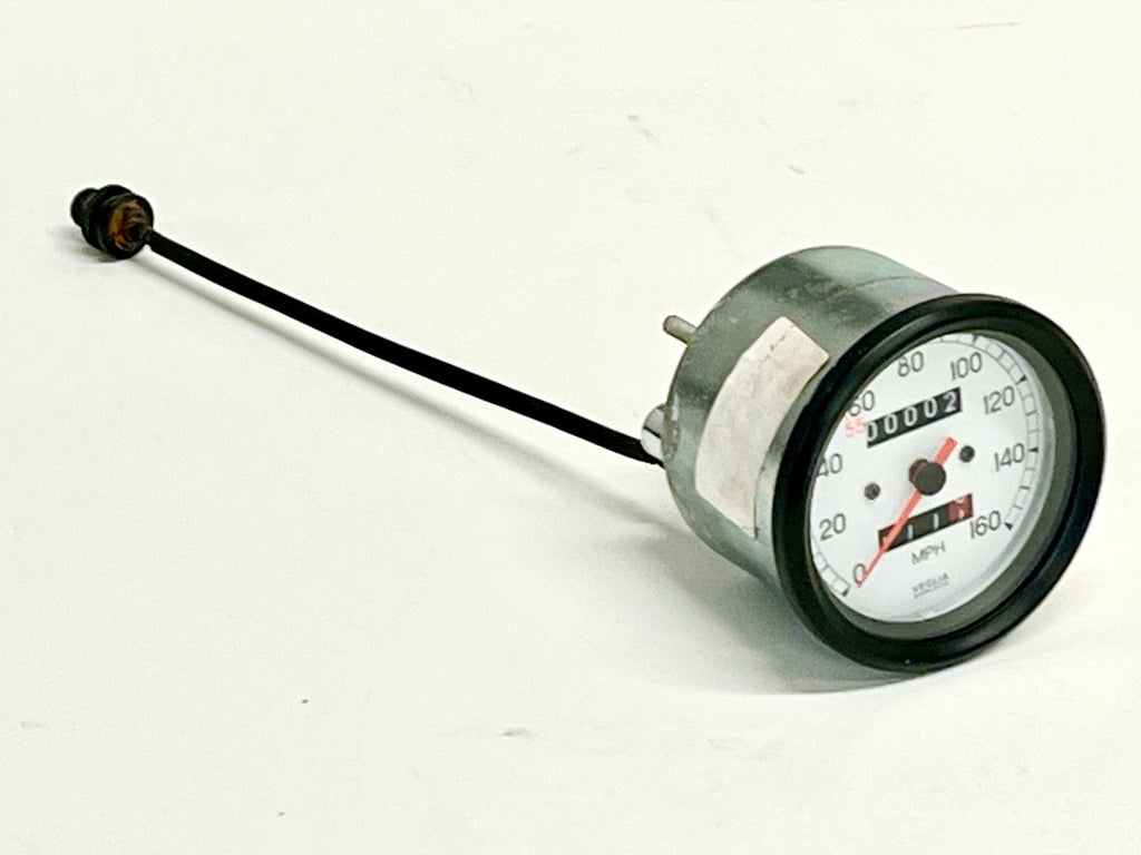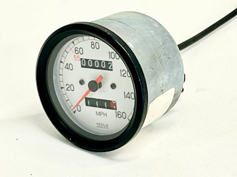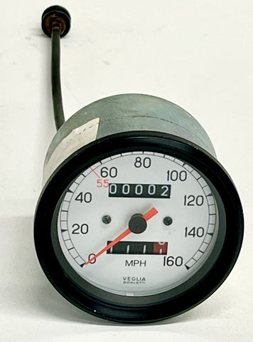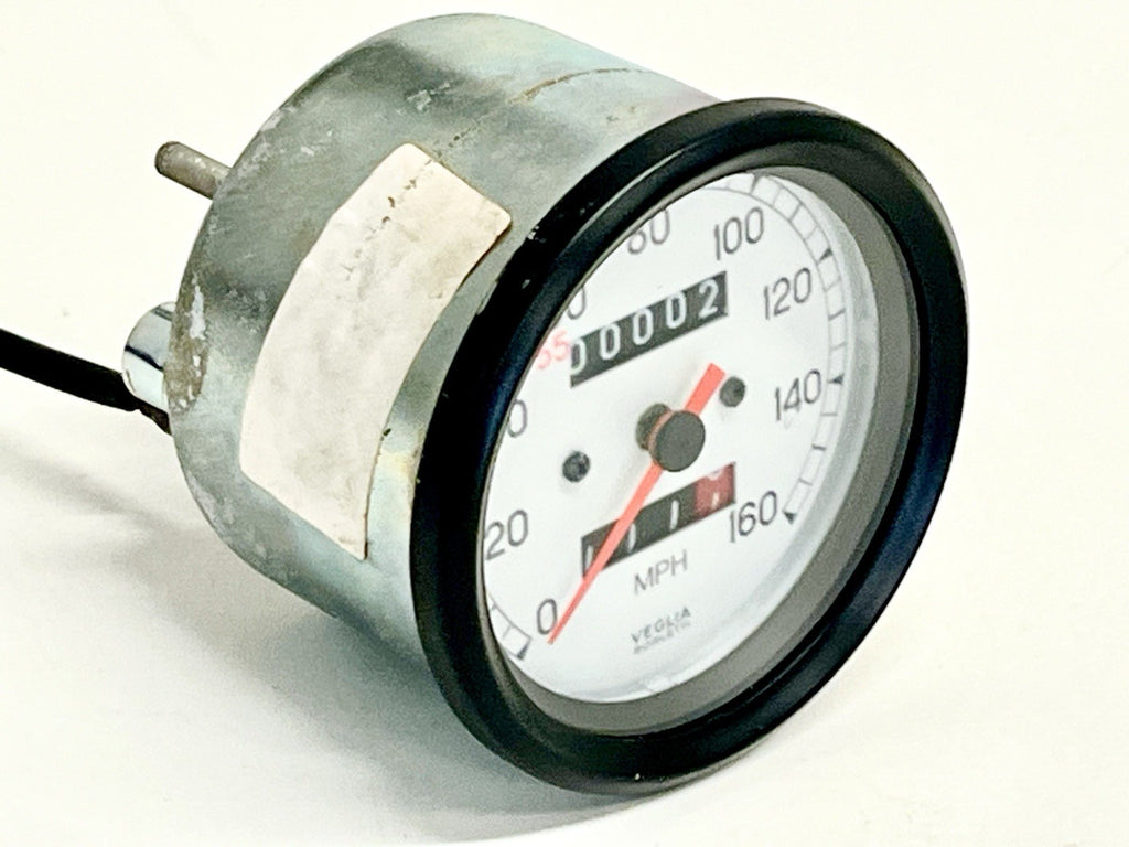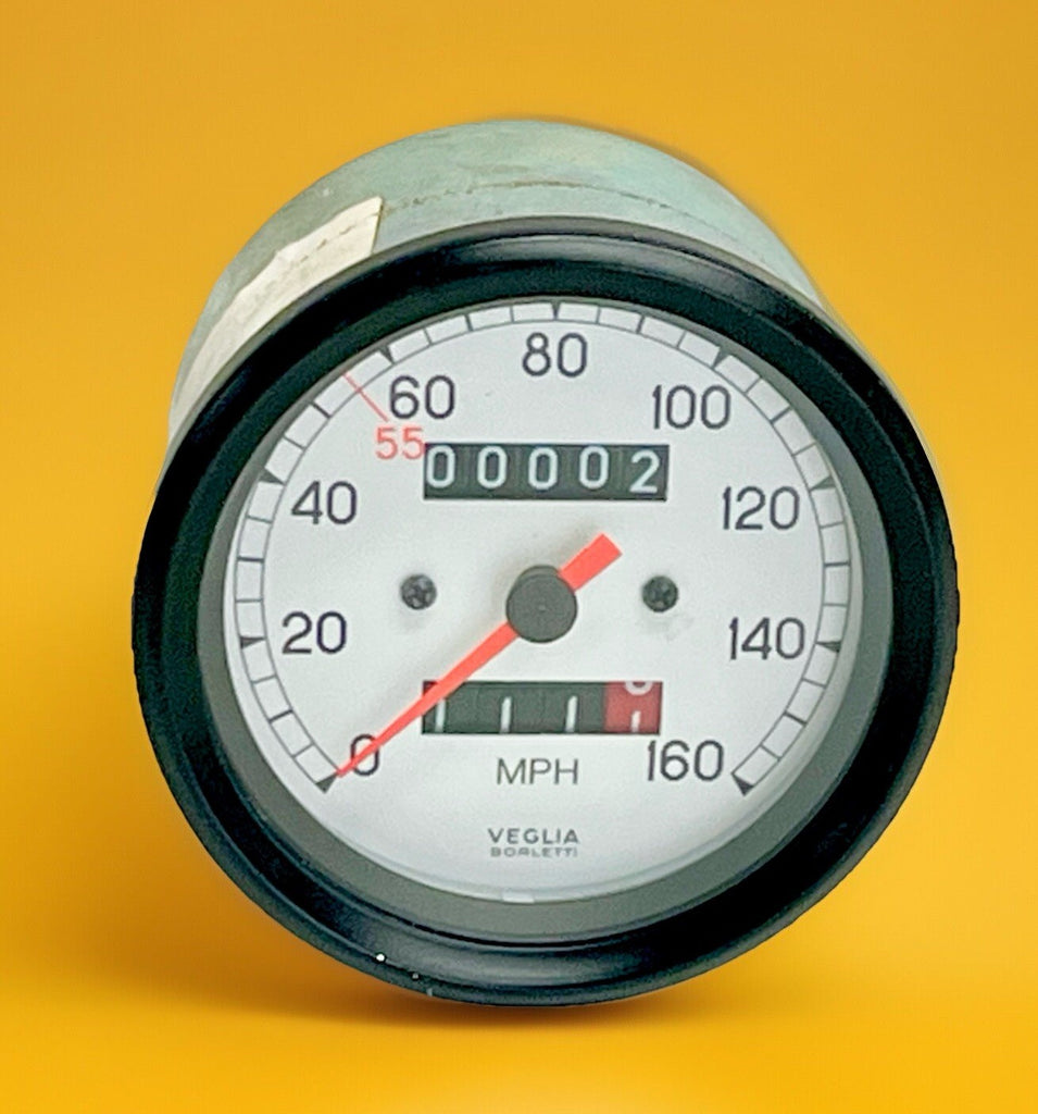 The product is a genuine OEM Veglia speedometer designed for Ducati motorcycles such as 851, 888, 900SS, and 750SS from 1991 to 1998. This speedometer gauge features a fluorescent orange needle color and is illuminated for easy reading at night. With a vintage part designation, this speedometer is a rare find for those looking to replace or upgrade their motorcycle's instrument panel. The manufacturer part number is 201502309, ensuring compatibility and authenticity.