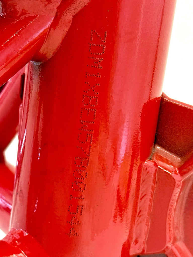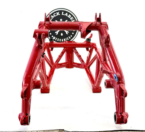 The product is a genuine used Ducati 1098S Superbike main frame chassis, made in Italy. This sport bike frame is in red color and is designed for the front placement on the vehicle. As a high-quality and authentic Ducati part, it ensures durability and performance for motorcycle enthusiasts looking to upgrade or repair their bike's frame.