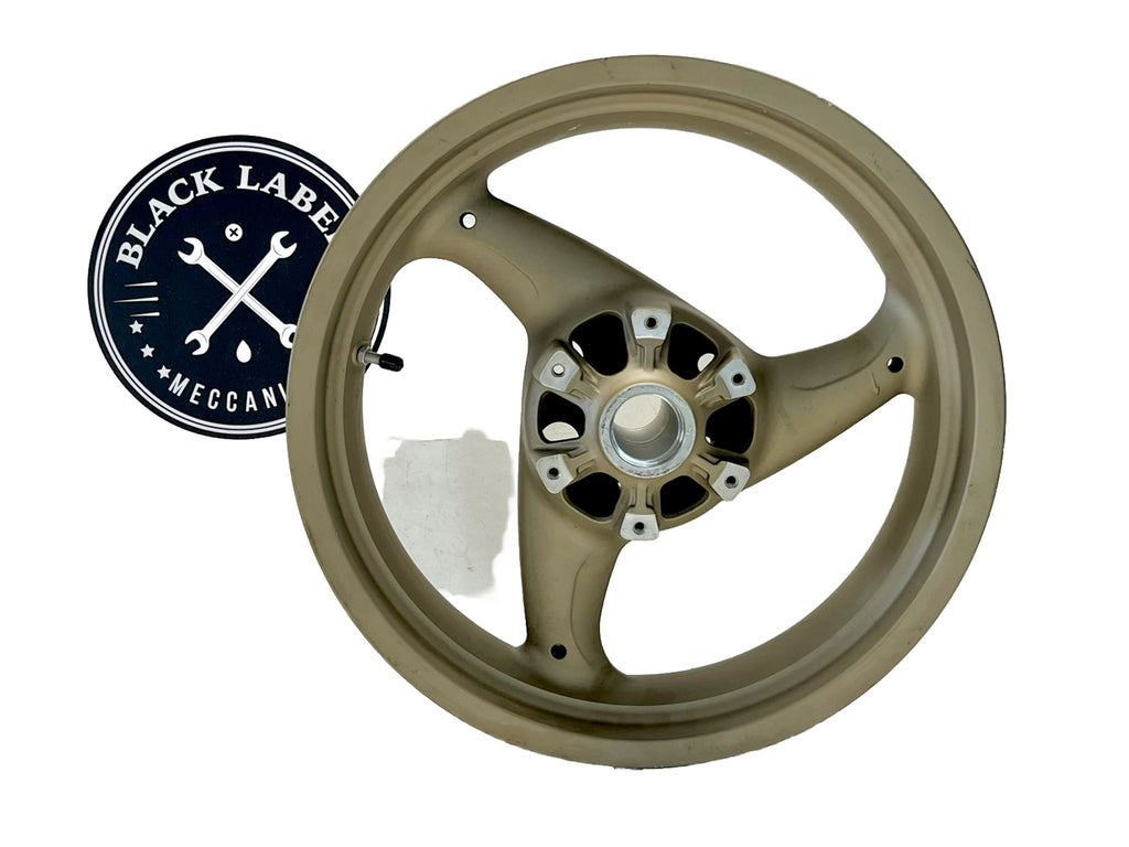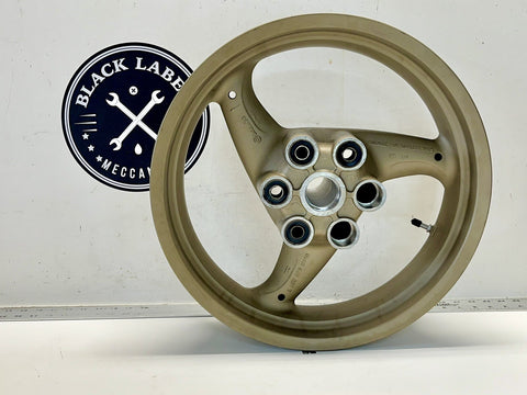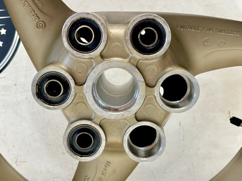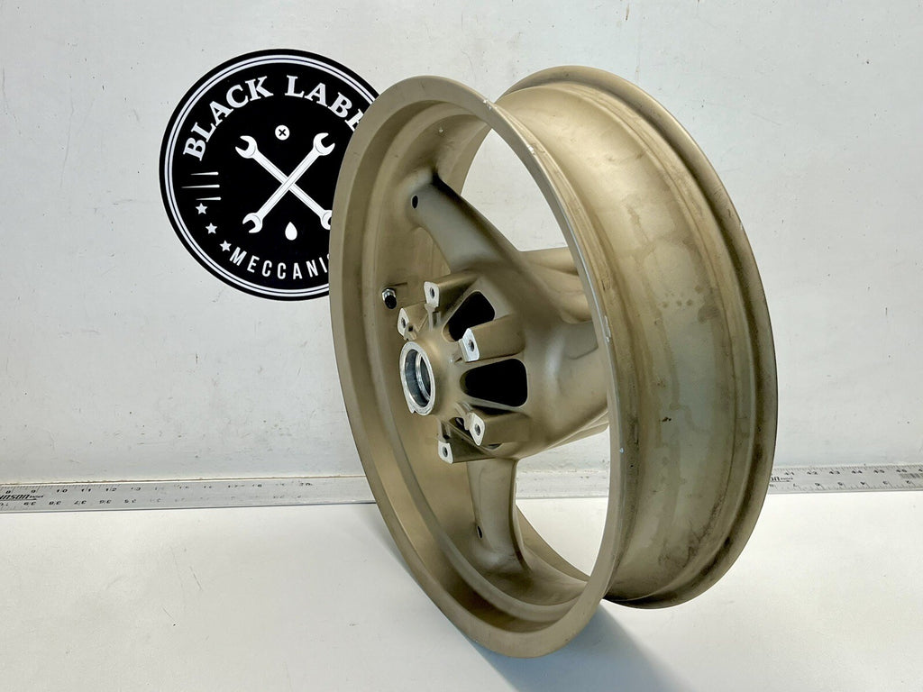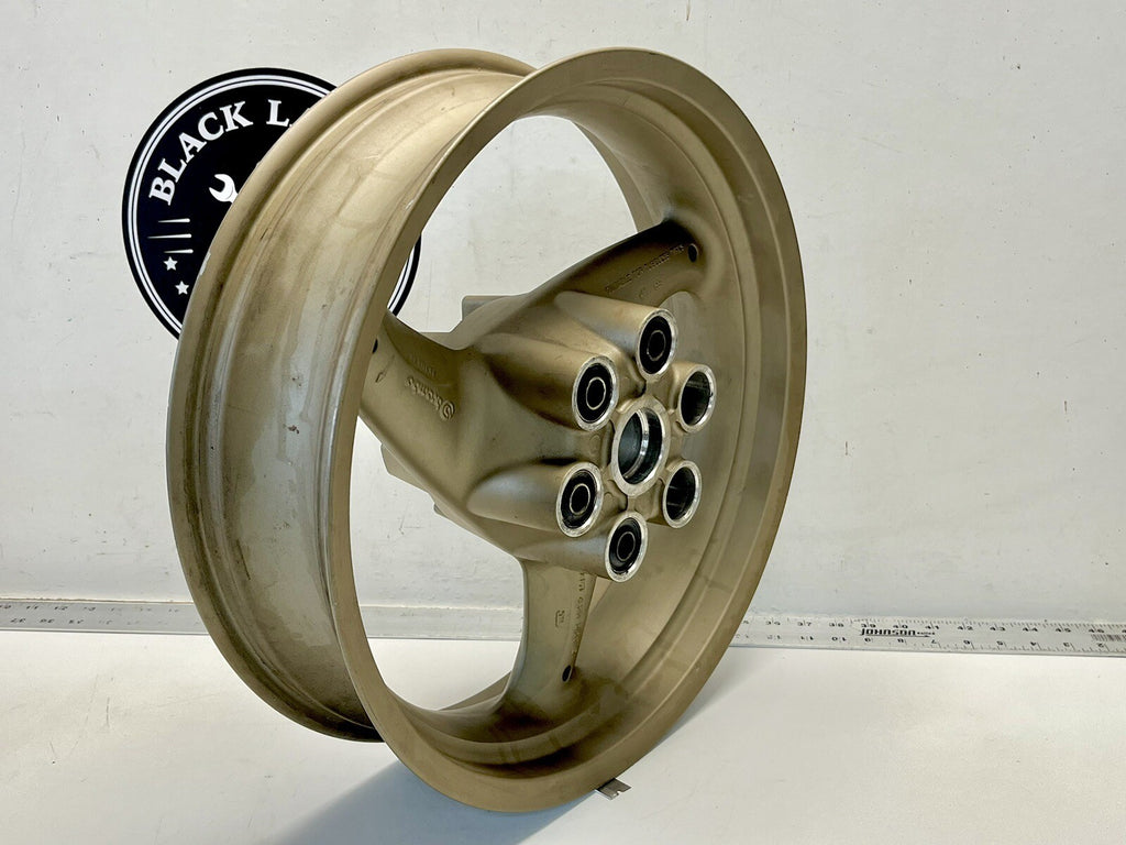 For sale is a rear wheel for a Ducati motorcycle, compatible with models from 1998 to 2003. The wheel is a 3 spoke Brembo design in Gold color. It is in good condition and ready to be installed on your bike. Suitable for use as a replacement or upgrade to your current wheel. Paint has scratches , bearings and Cush drives missing. This is a new wheel that was robbed of parts . Wheel is 100% straight