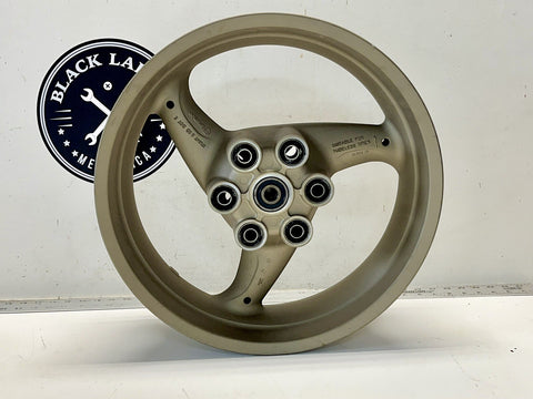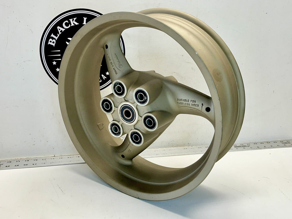 For sale is a rear wheel for a Ducati motorcycle, compatible with models from 1998 to 2003. The wheel is a 3 spoke Brembo design in Gold color. It is in good condition and ready to be installed on your bike. Suitable for use as a replacement or upgrade to your current wheel. Paint has minor scratches and chips . Wheel is 100% straight